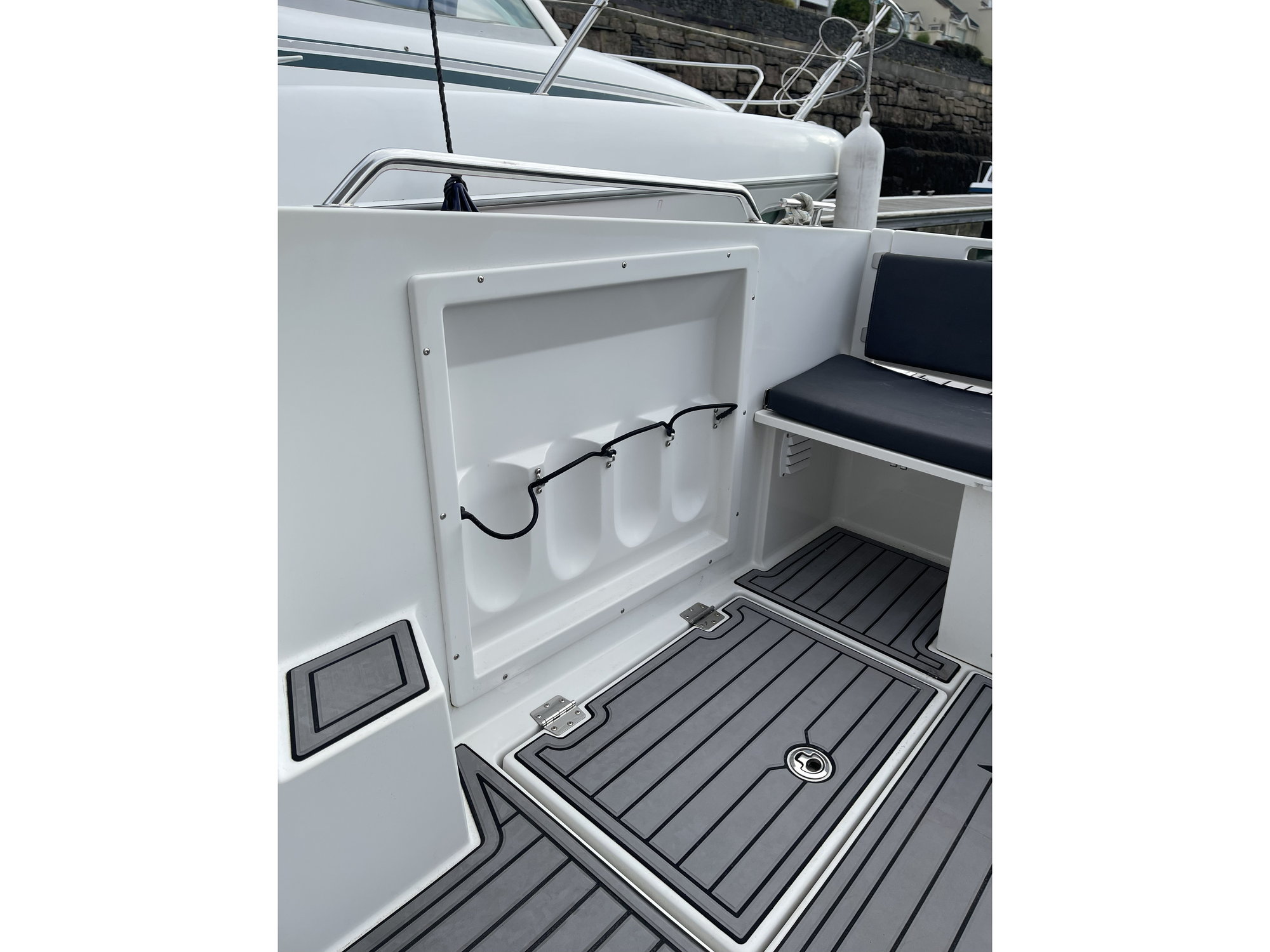 Powered by a Yamaha F200 with just 85 engine hours, recently serviced, she offers smooth, efficient running and easy handling. A bow thruster, electric trim tabs, and electric windlass further enhance control, whether manoeuvring in harbour or anchoring for the day.