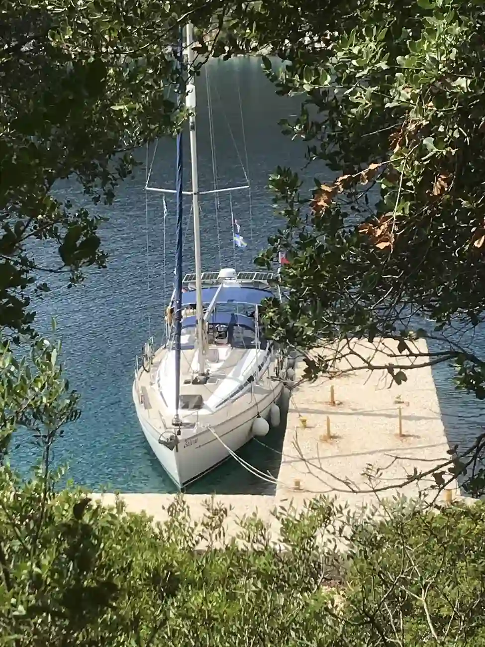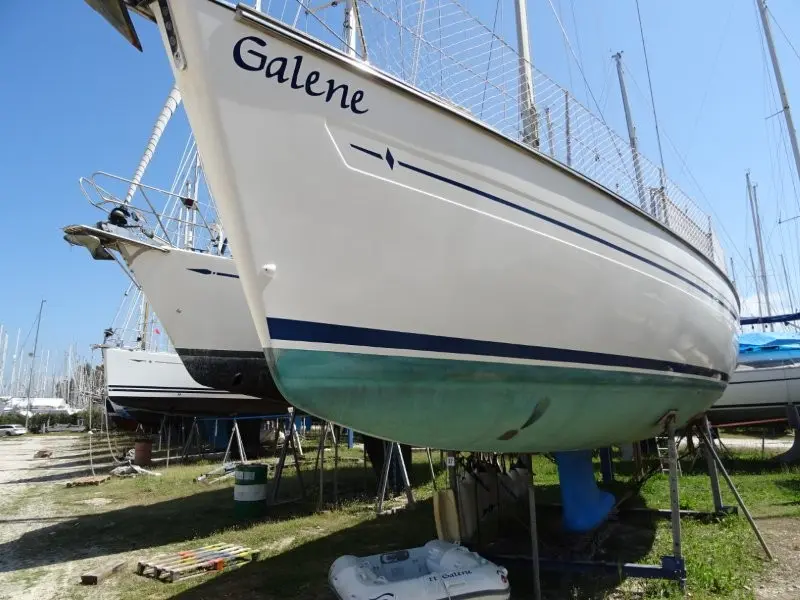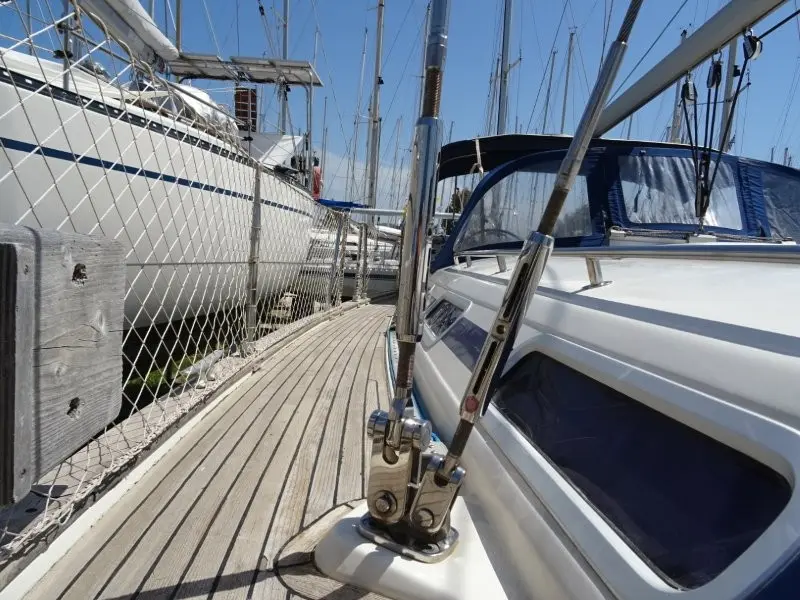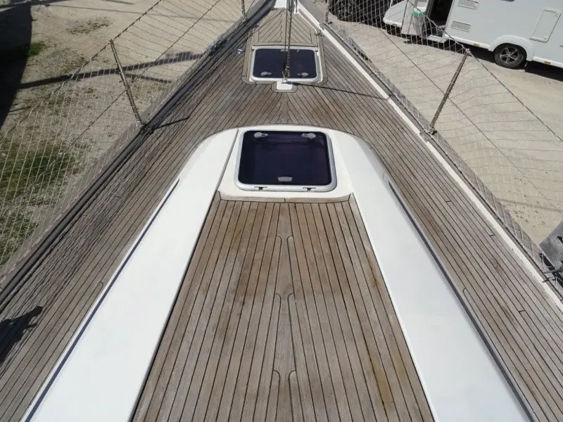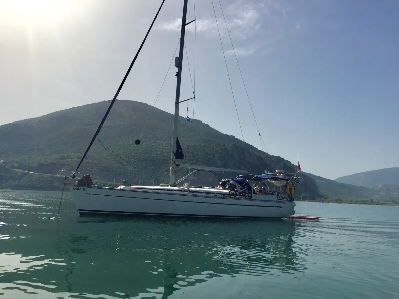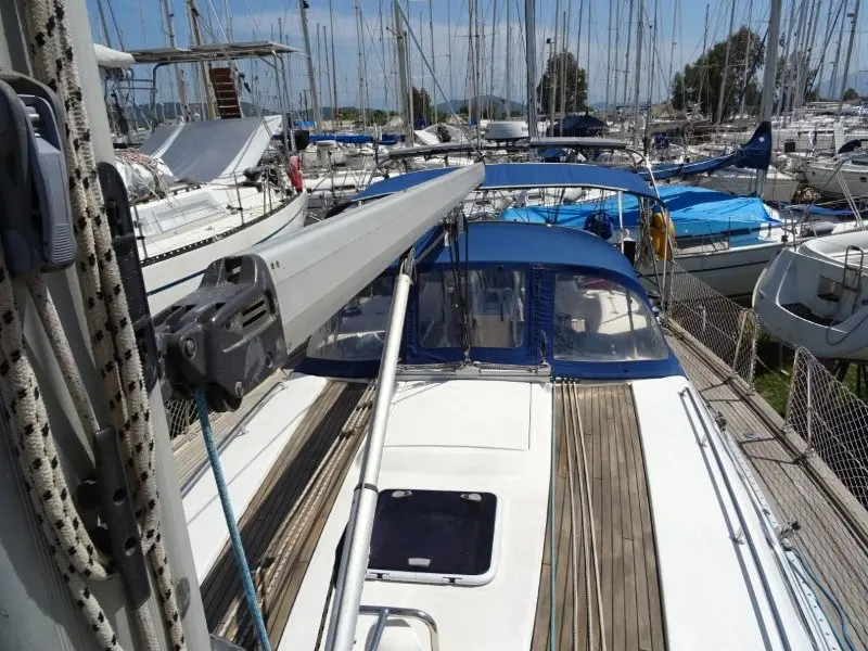 Accom for 6 in 3 double cabins. Wood joinered interior, Forward master V berth ensuit electric Jabsoc heads/shower, 2 x double aft cabins, 2nd heads/shower + holding tank. Quick 30 ltr hot water. Well equipped galley, Bavaria oven (2019), 2 burner hob, Isotherm fridge & freezer comp (new seawater cooled fridge system 2024)
