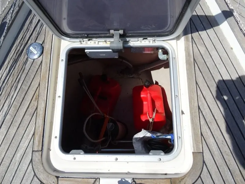 Fuel: Single 220 ltr tank (plastic)Water: 370 ltrs in 2 tanks (plastic)Holding: 1 x 50 ltr tank