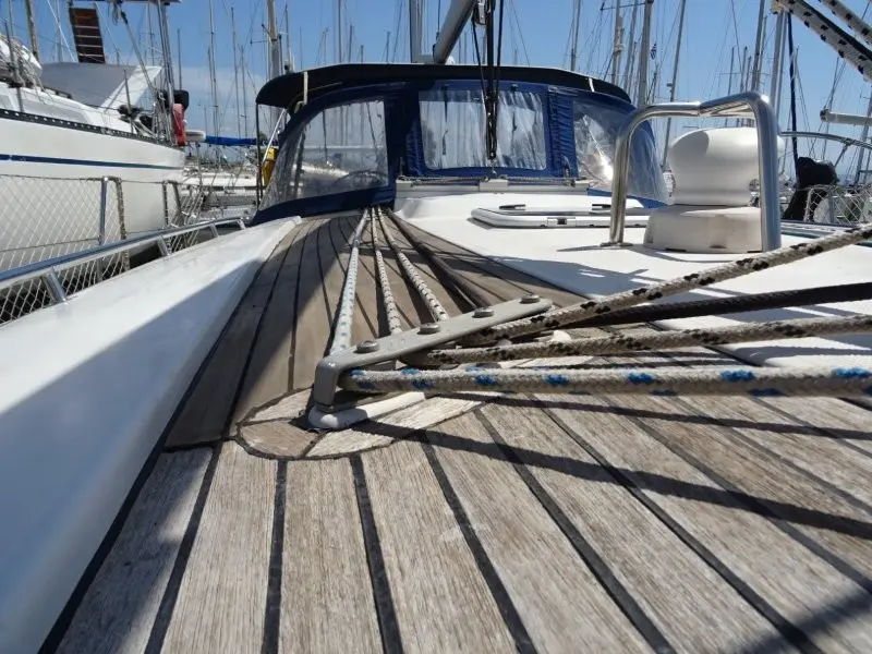 Accom for 6 in 3 double cabins. Wood joinered interior Forward master V berth en-suite electric Jabsoc heads/shower2 x double aft cabins, 2nd heads/shower + holding tank.