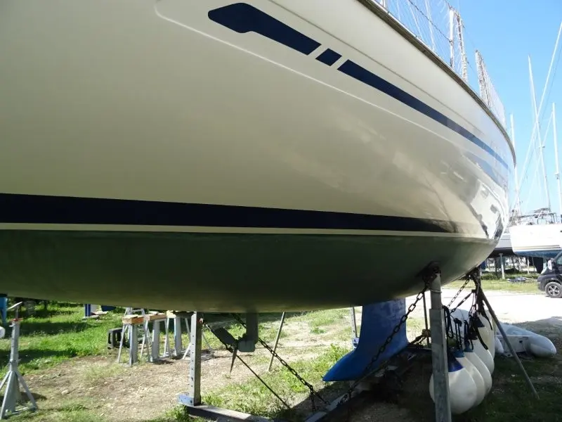 Bavaria 44 built 2002 to J&J design. Popular aft cockpit cruiser. Full Teak decks & cockpit. Fin bulb shoal keel (6ft)twin helm steering. Hull preventative treatment 2018 (2 coats 3m epoxy before Coppercoat applied)All through hulls & sea cocks replaced 2018
