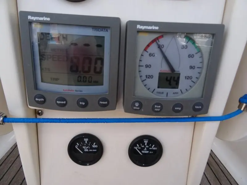 All Raymarine instruments;2 plotters ES90 & DS127Radar – Raymarine2 x VHF (fixed & handheld)Autopilot AVC400Digital yacht wireless network – networked.GPSAISNavtex2 x compass Raymrine Speed, wind, depth