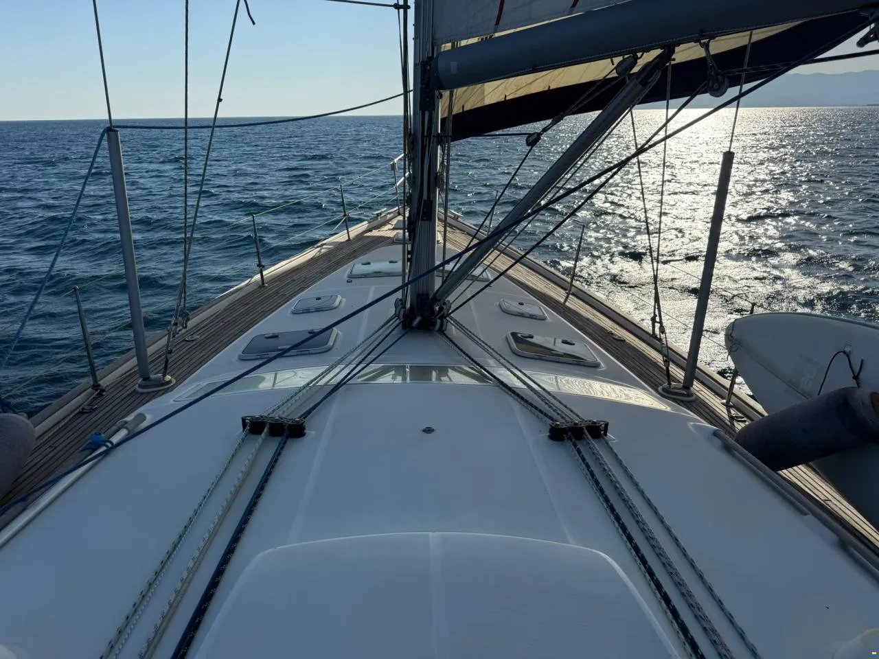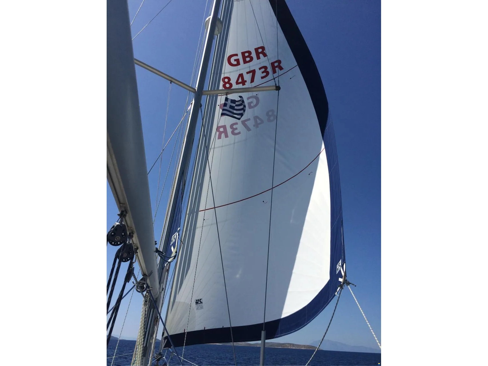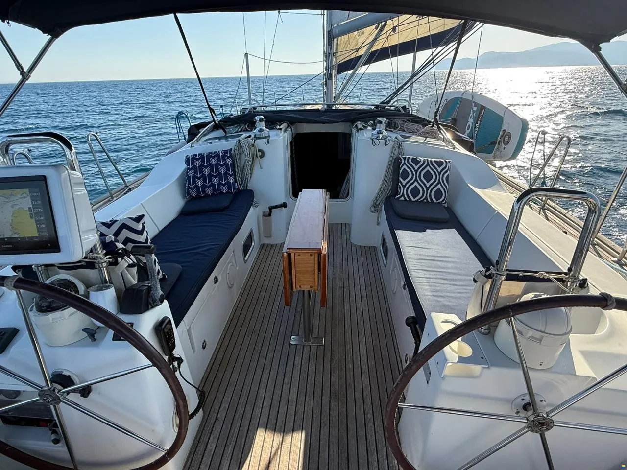 Performance is a highlight. She cruises steadily at 7.5 knots with her deep-draft keel and upgraded engine. The rig was fully overhauled in 2025, with new standing rigging, spreader tips, and a serviced furling system. Electronics were modernised with a 2024 Garmin suite including chartplotter and AIS. Recent steering and rudder service, combined with an ultrasonic antifouling system, add to her turnkey reliability.