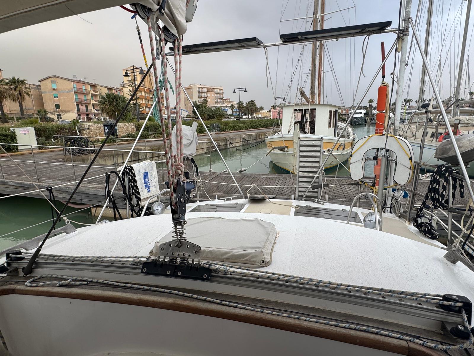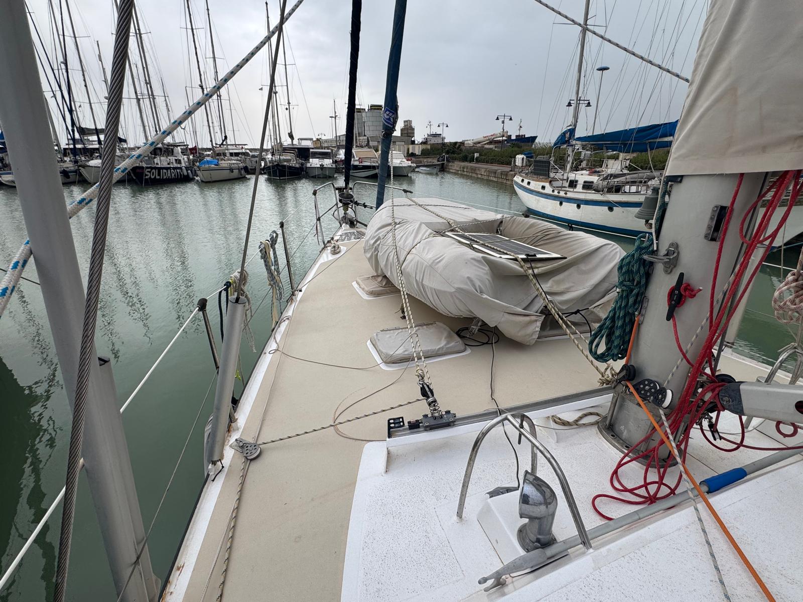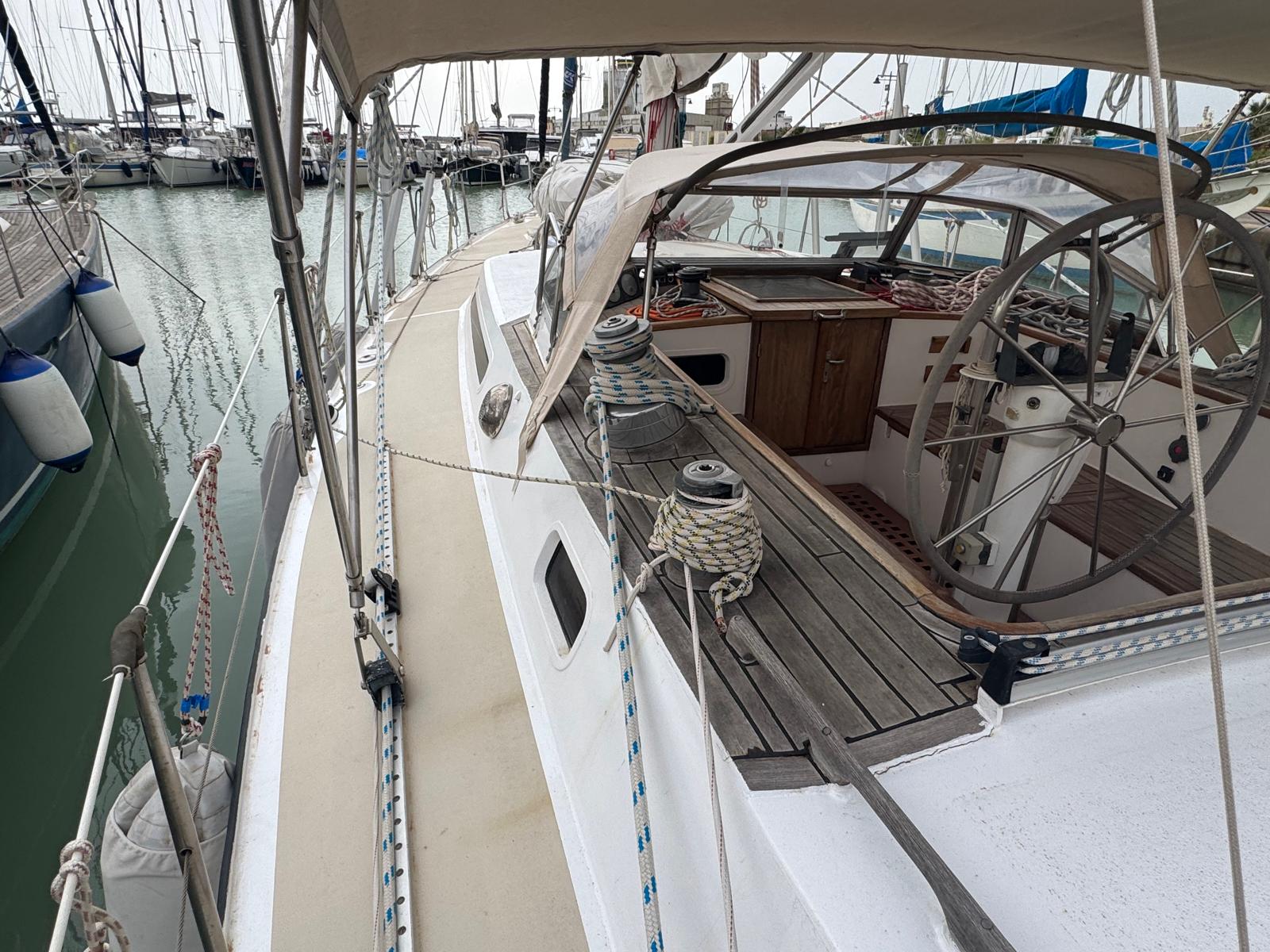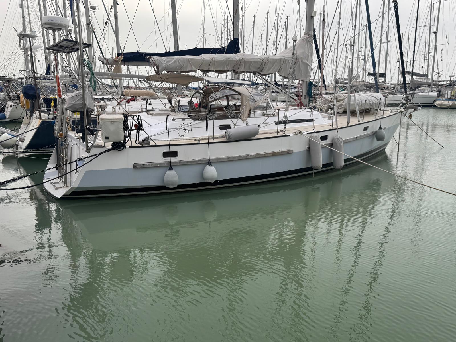 The Bruce Roberts Bober TS-434 for sale is a proven offshore cruising yacht lying in Licata. Built in 1995 by the respected Benjamins boat builders, specialists in metal yachts, she offers true bluewater capability. Her steel construction and cutter rig reflect a design focused on safety, strength, and long-distance sailing. As a result, she suits serious cruisers and liveaboard sailors.