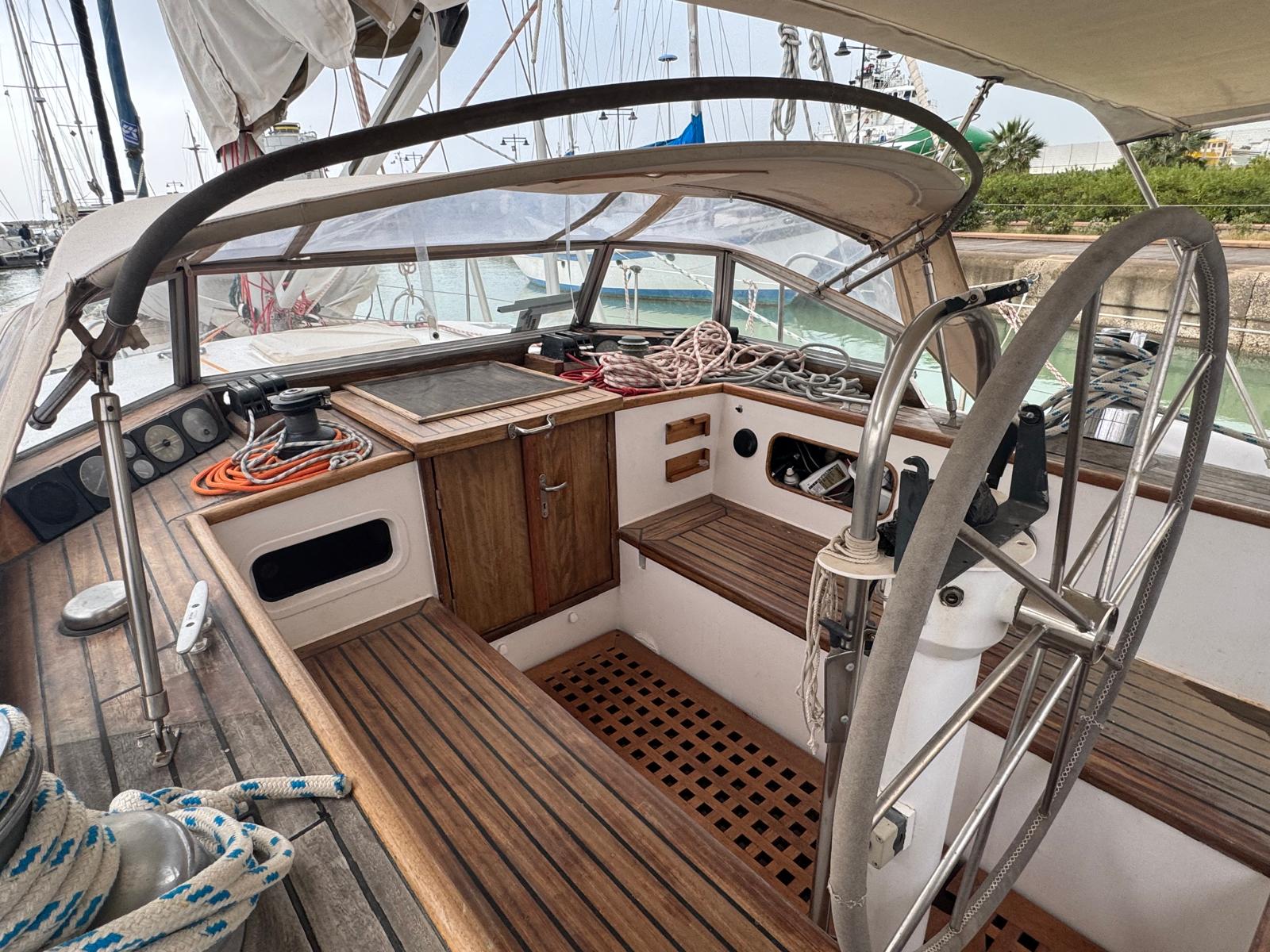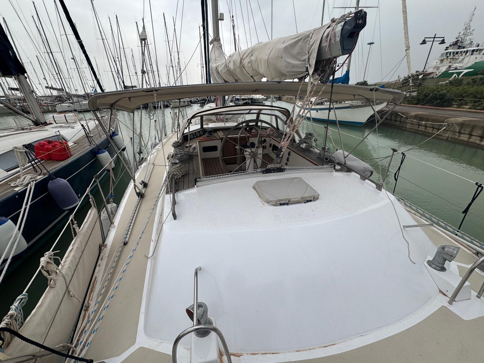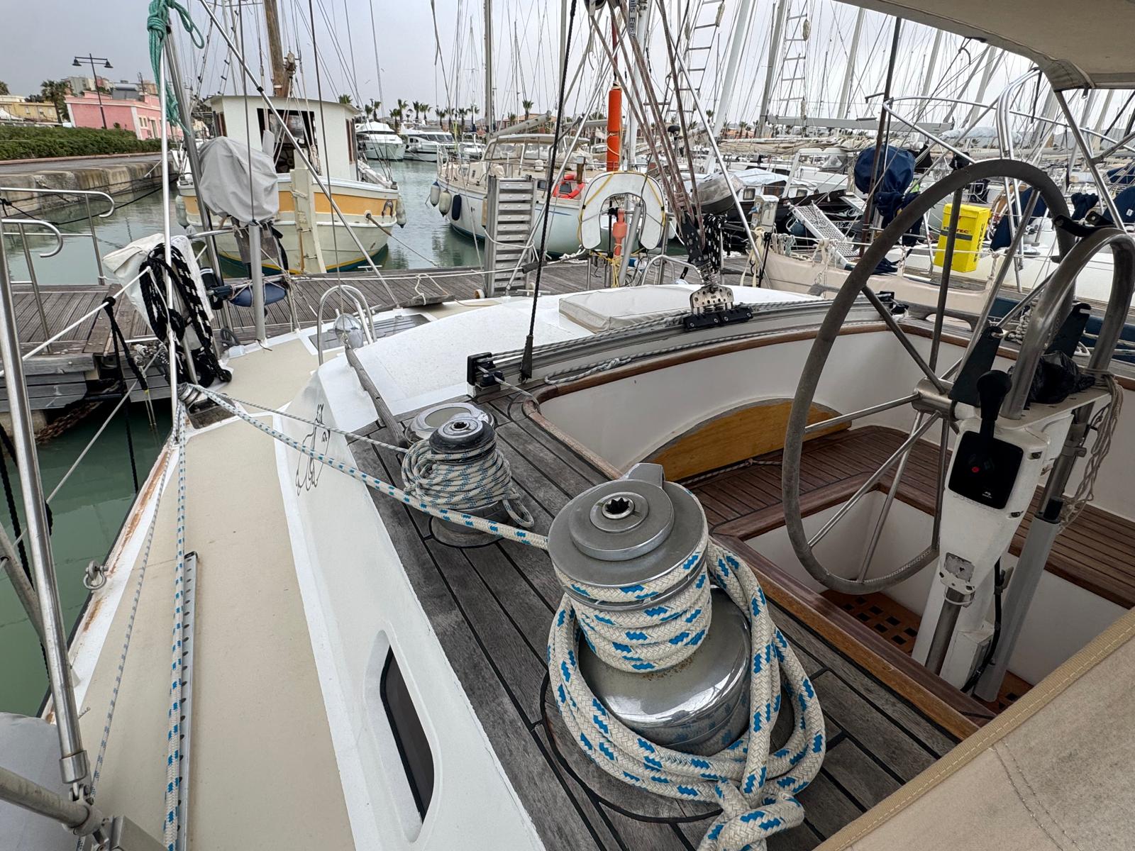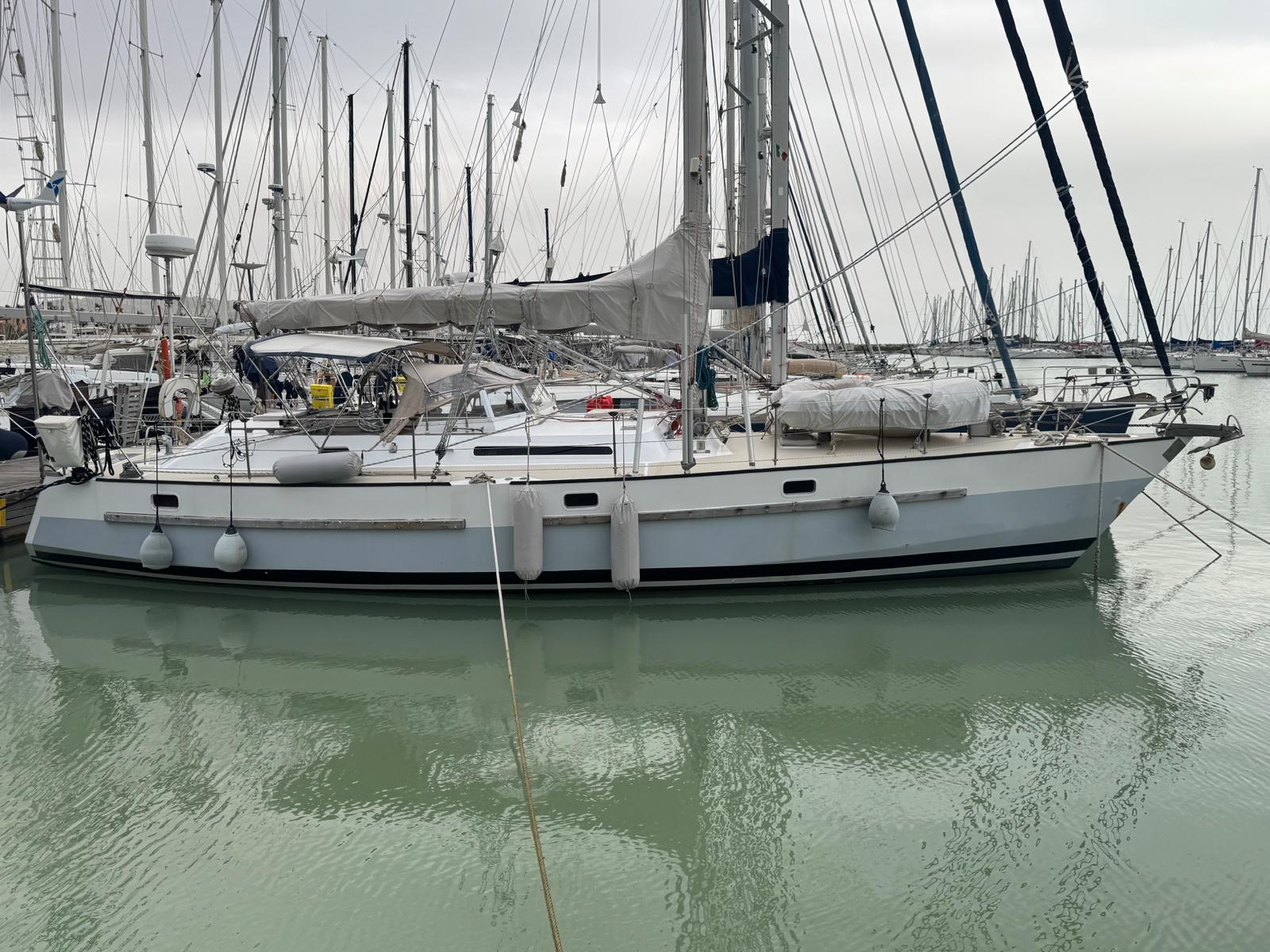 The Bruce Roberts Bober TS-434 for sale is a proven offshore cruising yacht lying in Licata. Built in 1995 by the respected Benjamins boat builders, specialists in metal yachts, she offers true bluewater capability. Her steel construction and cutter rig reflect a design focused on safety, strength, and long-distance sailing. As a result, she suits serious cruisers and liveaboard sailors.