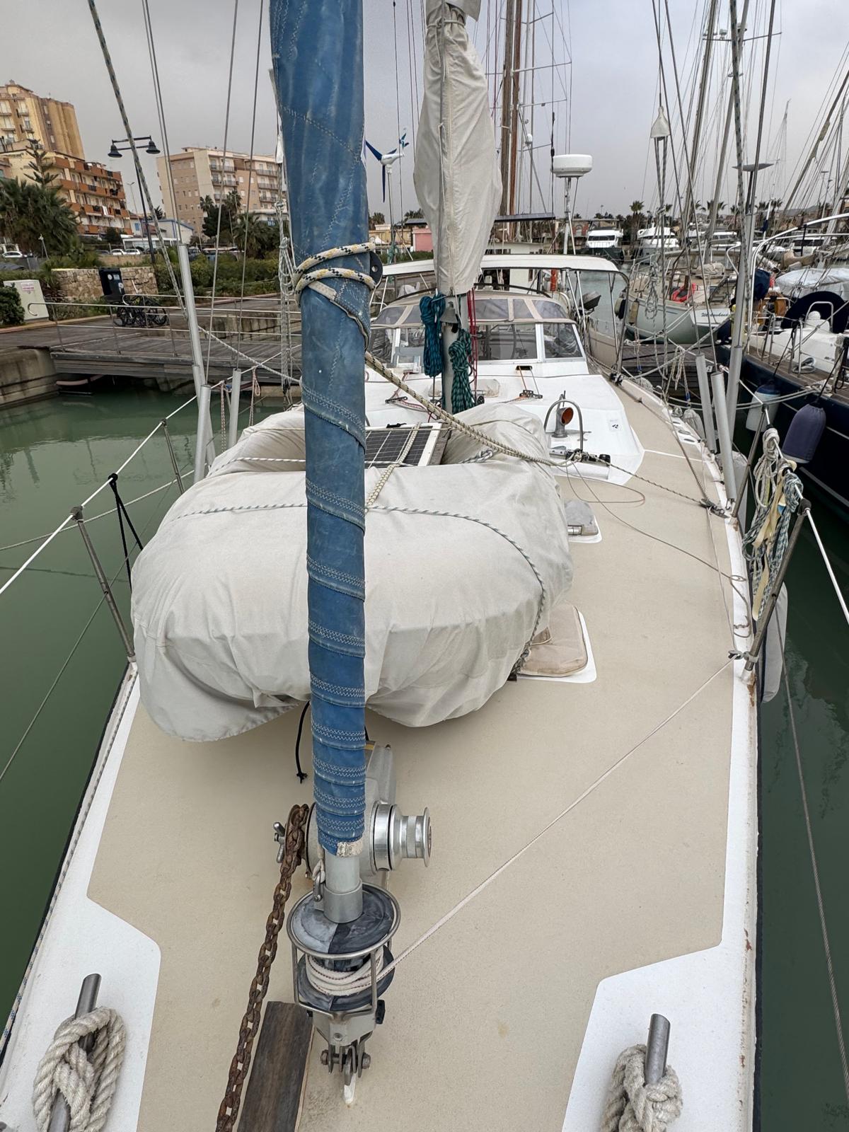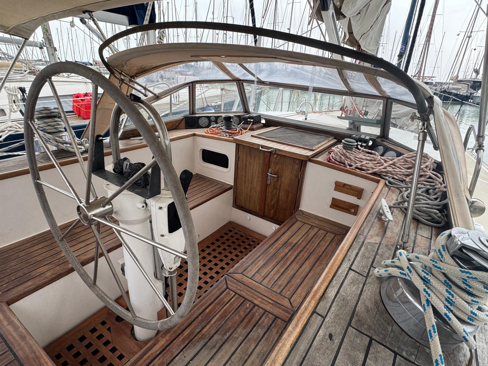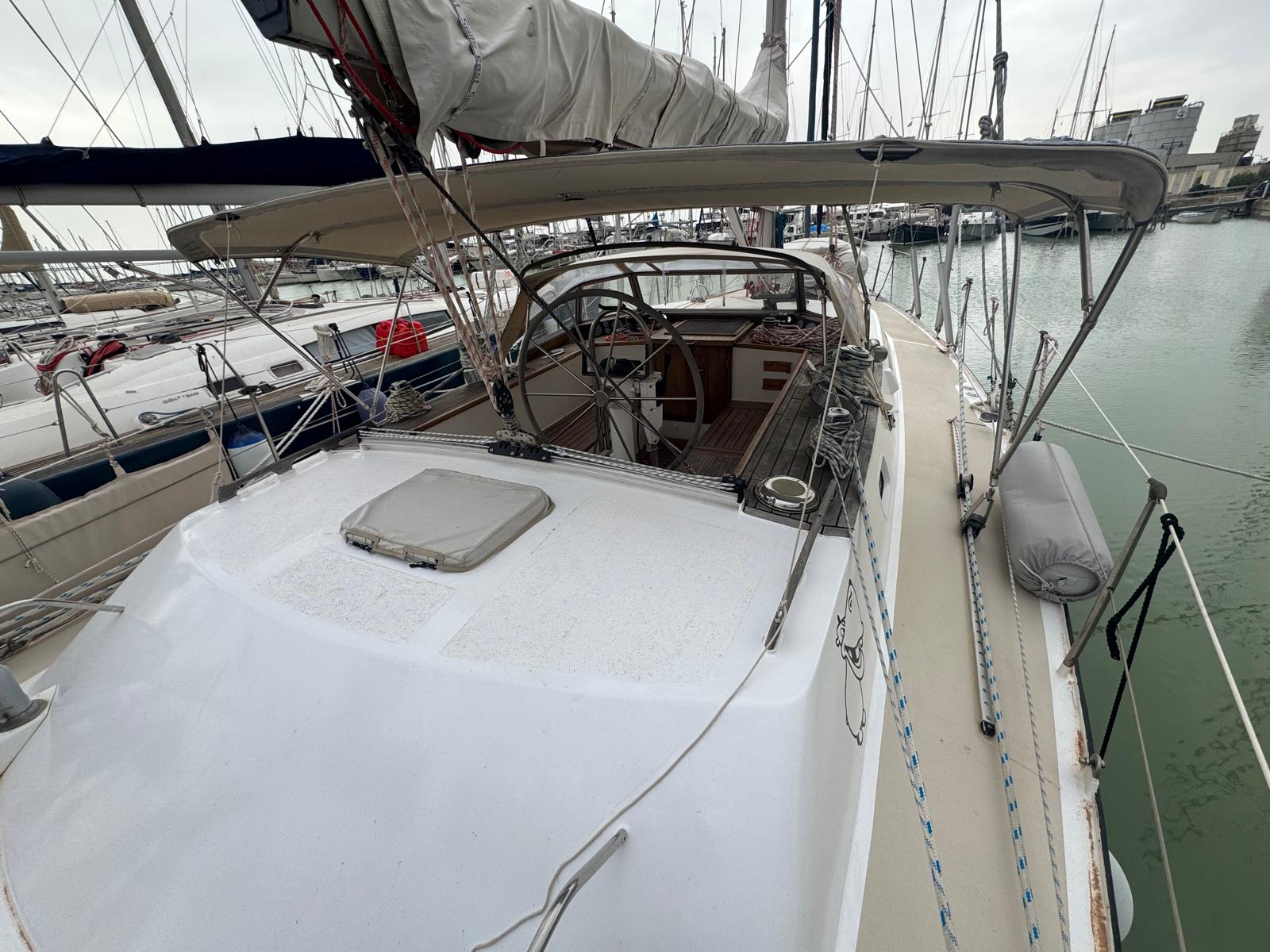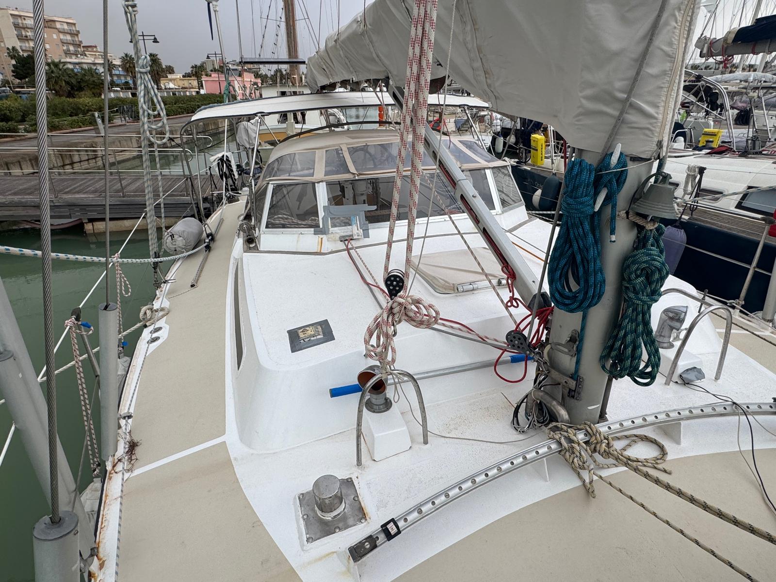 The Bruce Roberts Bober TS-434 for sale is a proven offshore cruising yacht lying in Licata. Built in 1995 by the respected Benjamins boat builders, specialists in metal yachts, she offers true bluewater capability. Her steel construction and cutter rig reflect a design focused on safety, strength, and long-distance sailing. As a result, she suits serious cruisers and liveaboard sailors.