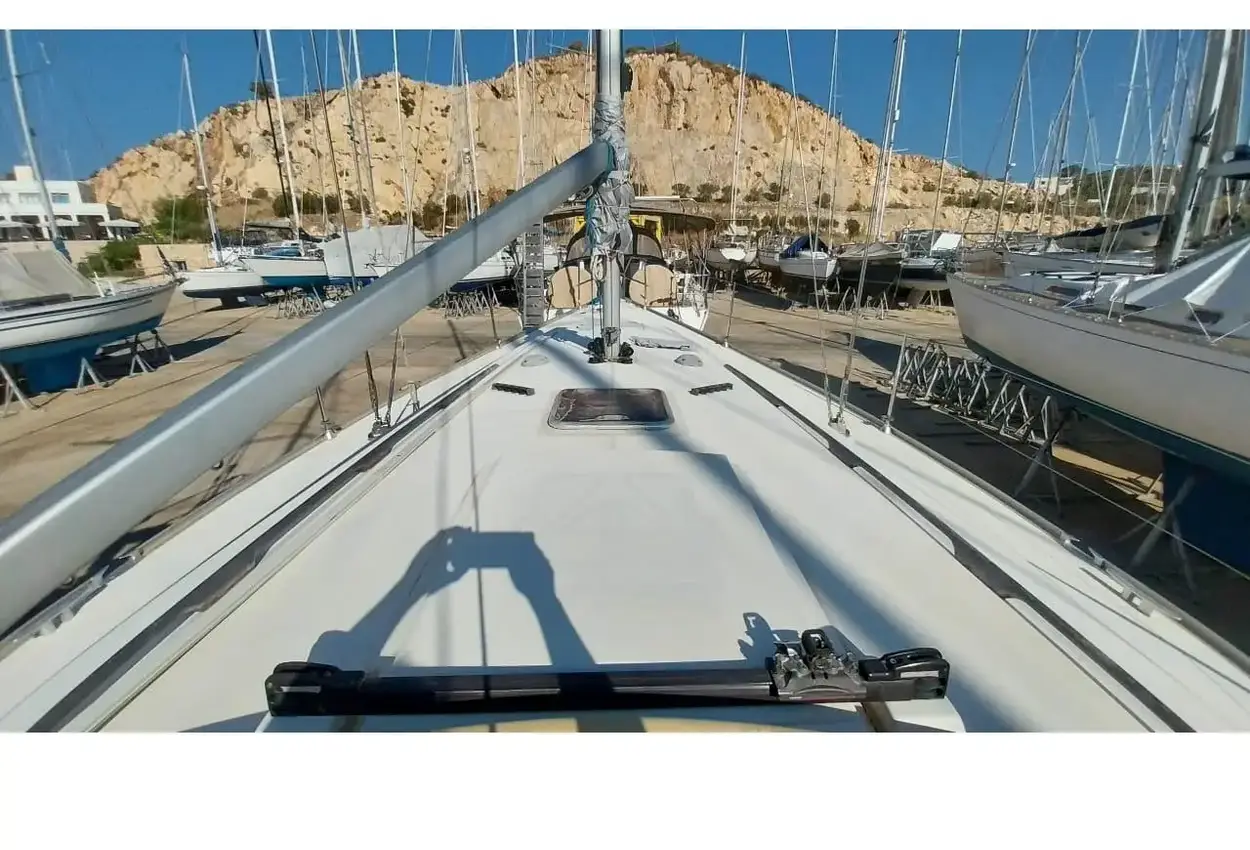 Powered by a Volvo Penta D2-40F (installed 2019) with saildrive, she’s reliable and efficient under power. Onboard electrics include both 12v and 220v systems, supported by two 100Ah domestic batteries, a 75Ah engine battery, and a portable Honda 1000 generator—ideal for life afloat. The rig features a double spreader aluminium mast, original stainless-steel rigging, and a sail wardrobe including a fully battened mainsail, genoa, and staysail. Sail handling is effortless thanks to two electric 44ST primaries and two 30ST halyard winches.