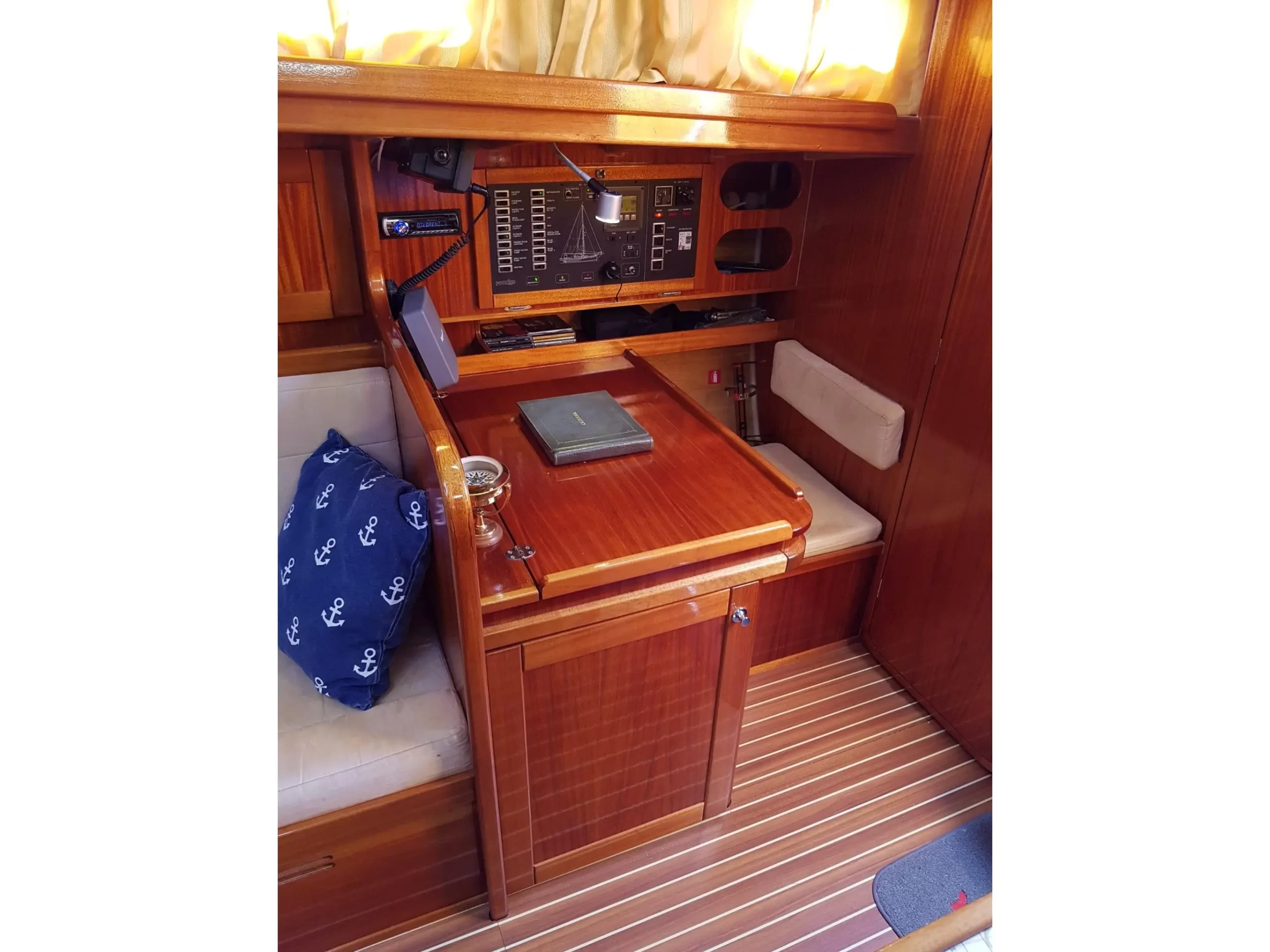 - Navigation panel with voltmeter, fresh water, fuel, and waste indicators