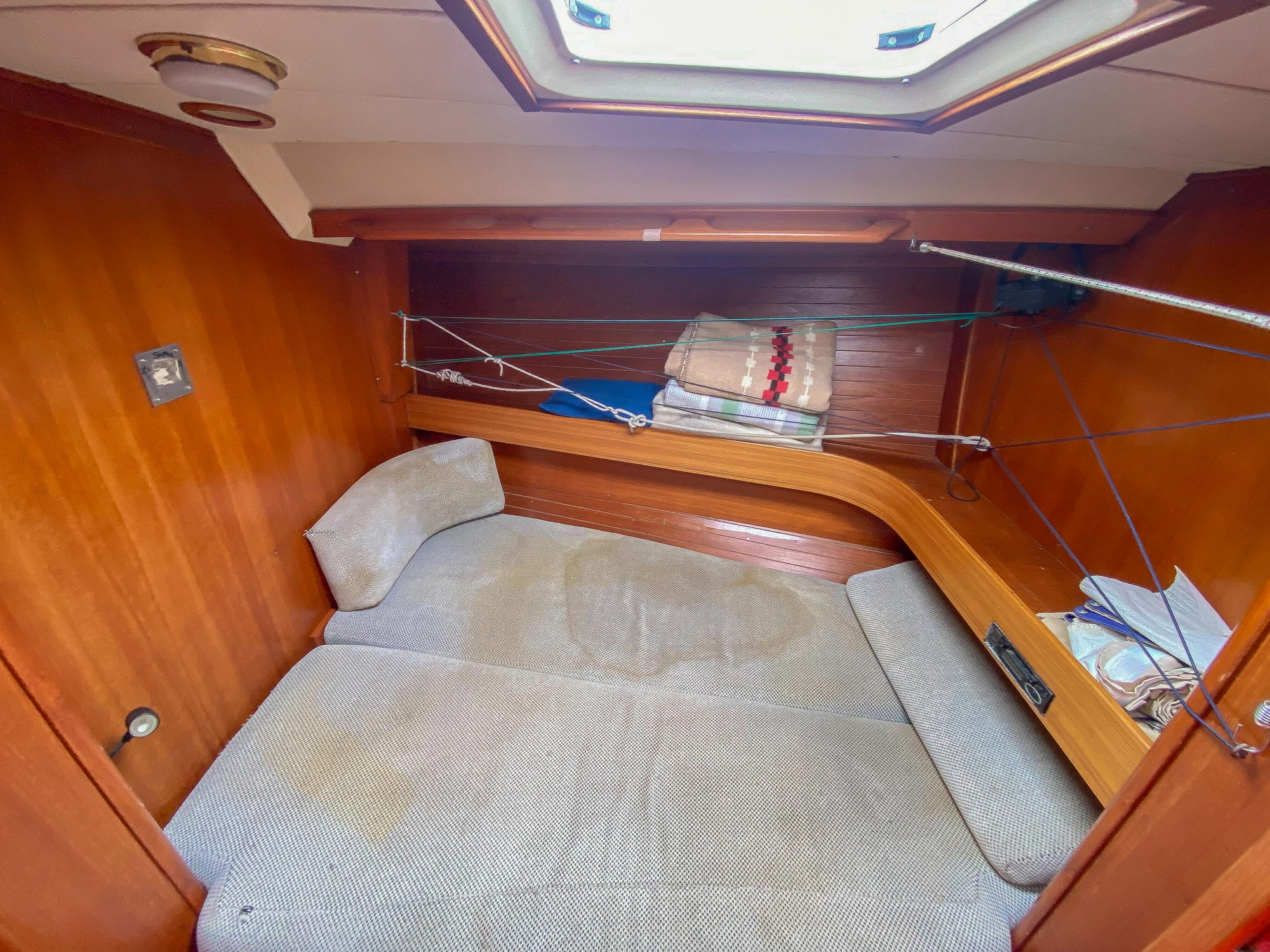 Cabin bench seating to starboard