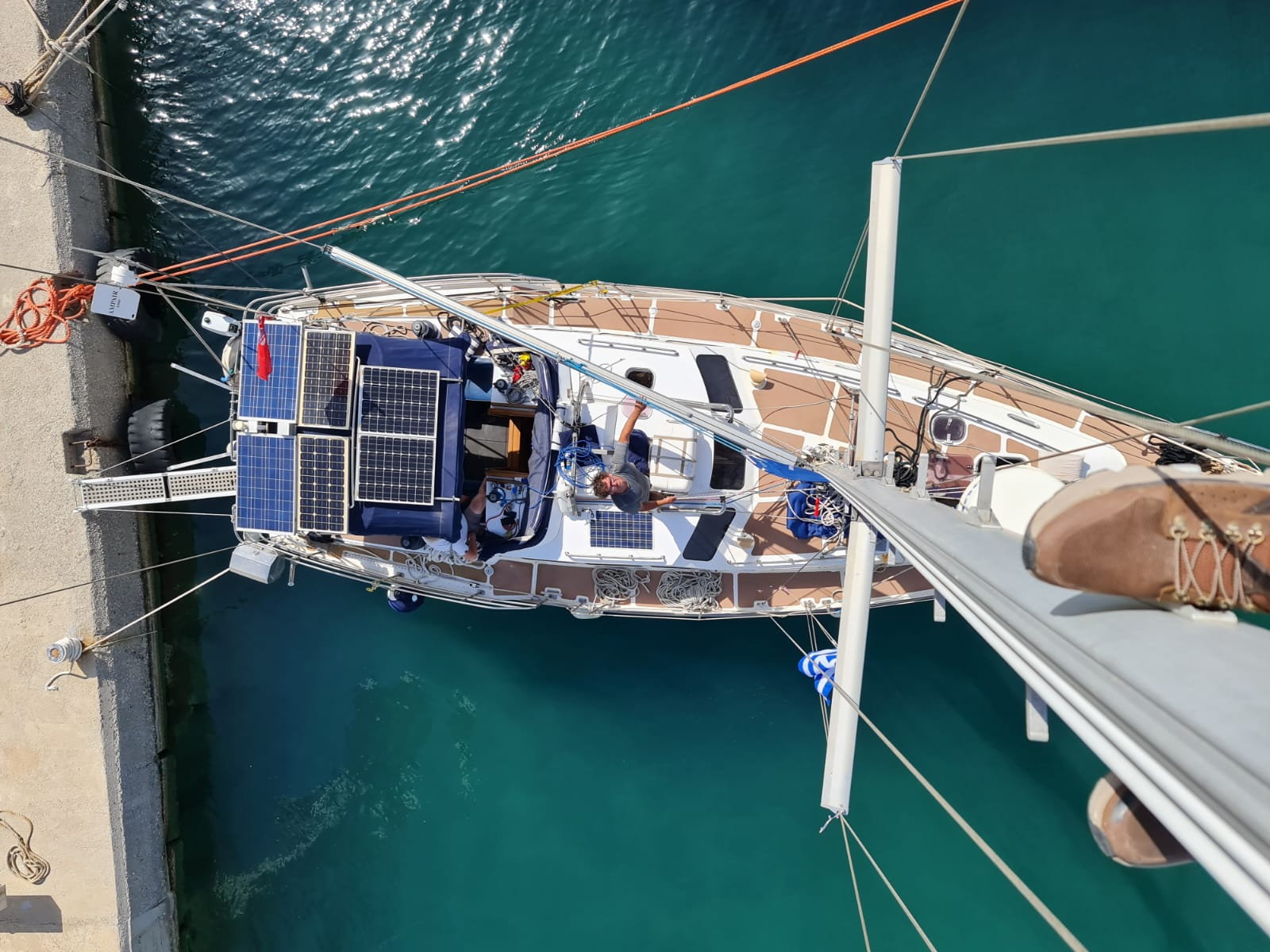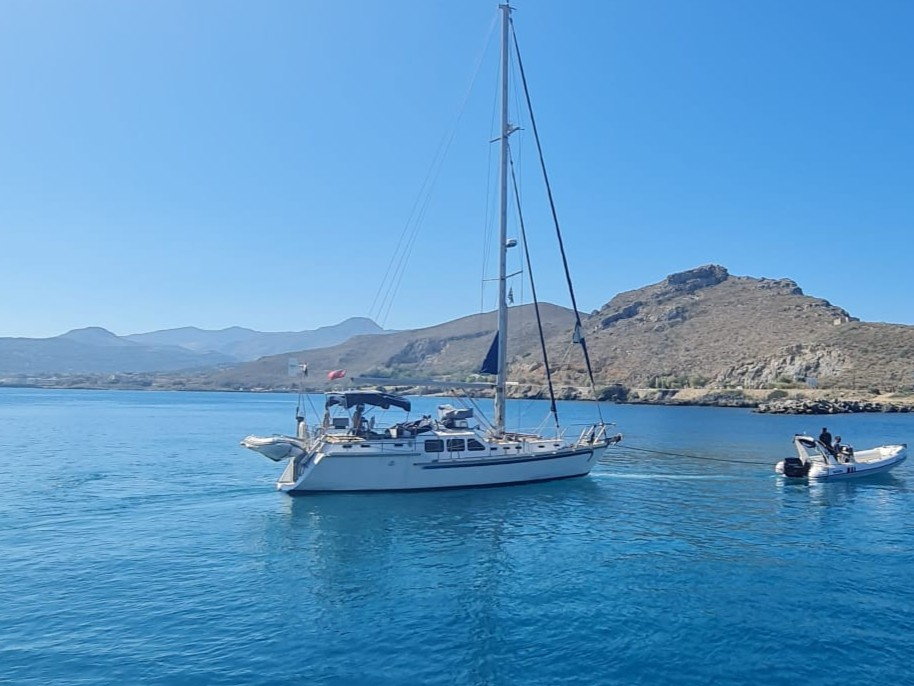This steel bluewater yacht for sale is a 13m centre-cockpit cutter launched in 2004 and built in England to high standards. Designed for long-distance cruising and liveaboard life, she offers serious strength, comfort, and offshore capability. She is VAT-paid and currently lying in Kissamos, Crete.