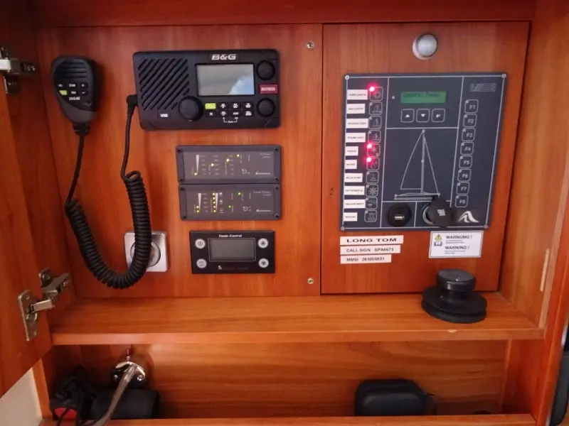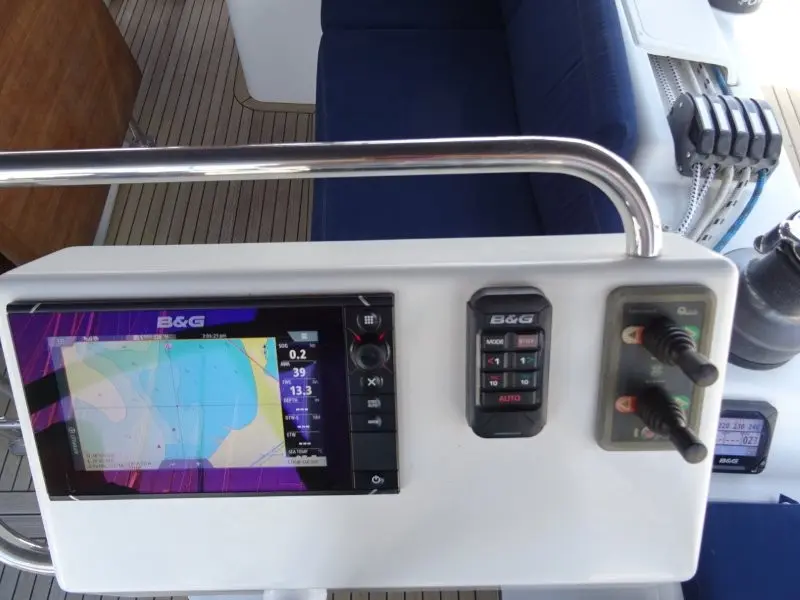 predominantly B&GPlotters: Zeus 2 x2GPS, Radar, Speed Log, Wind, Depth, AutopilotAIS: B&G Simrad NAIS-400 Class BVHF: B&G V50Compass: Garmin 125B/HGoFree wireless network
