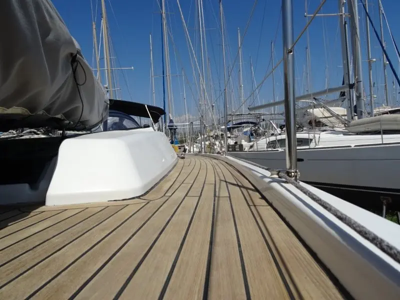 High quality marine plywood, satin varnishAcacia style floorboardsWhite bulkheadsWooden door framesWood / sandwich doorsUpholstery – Monte carlo cream