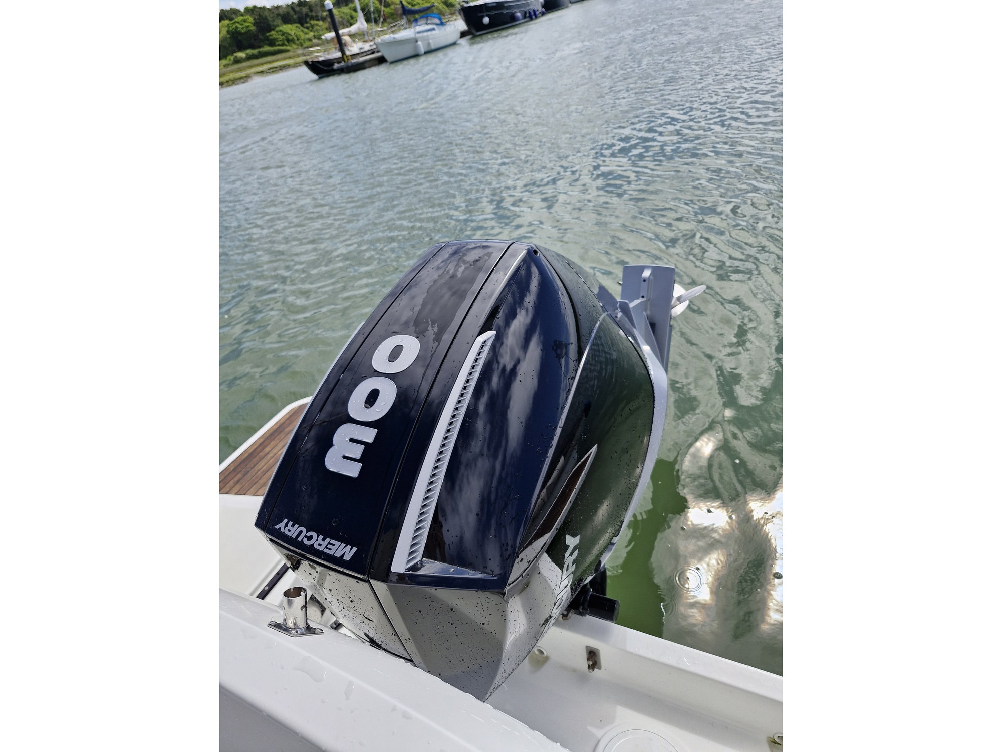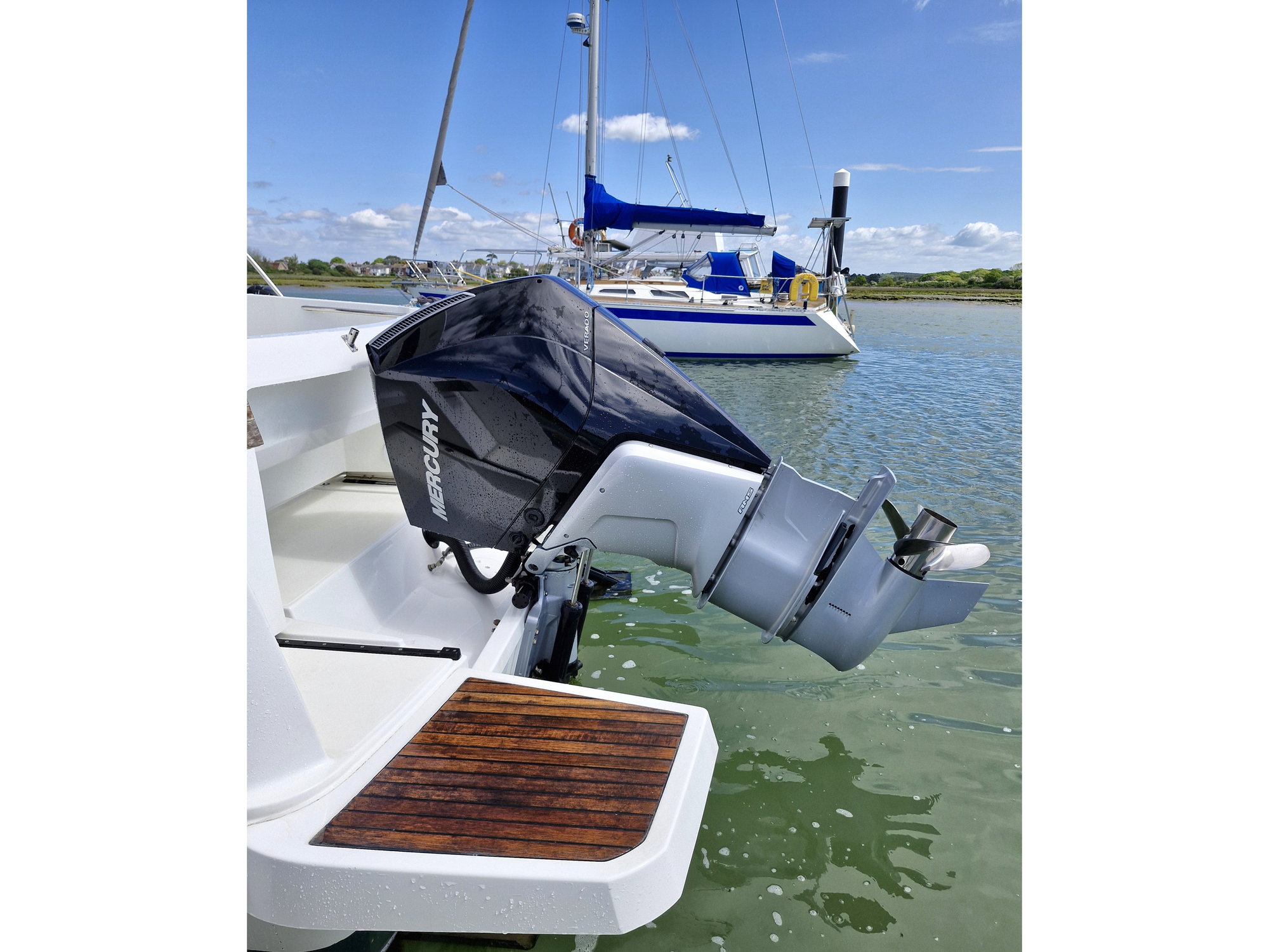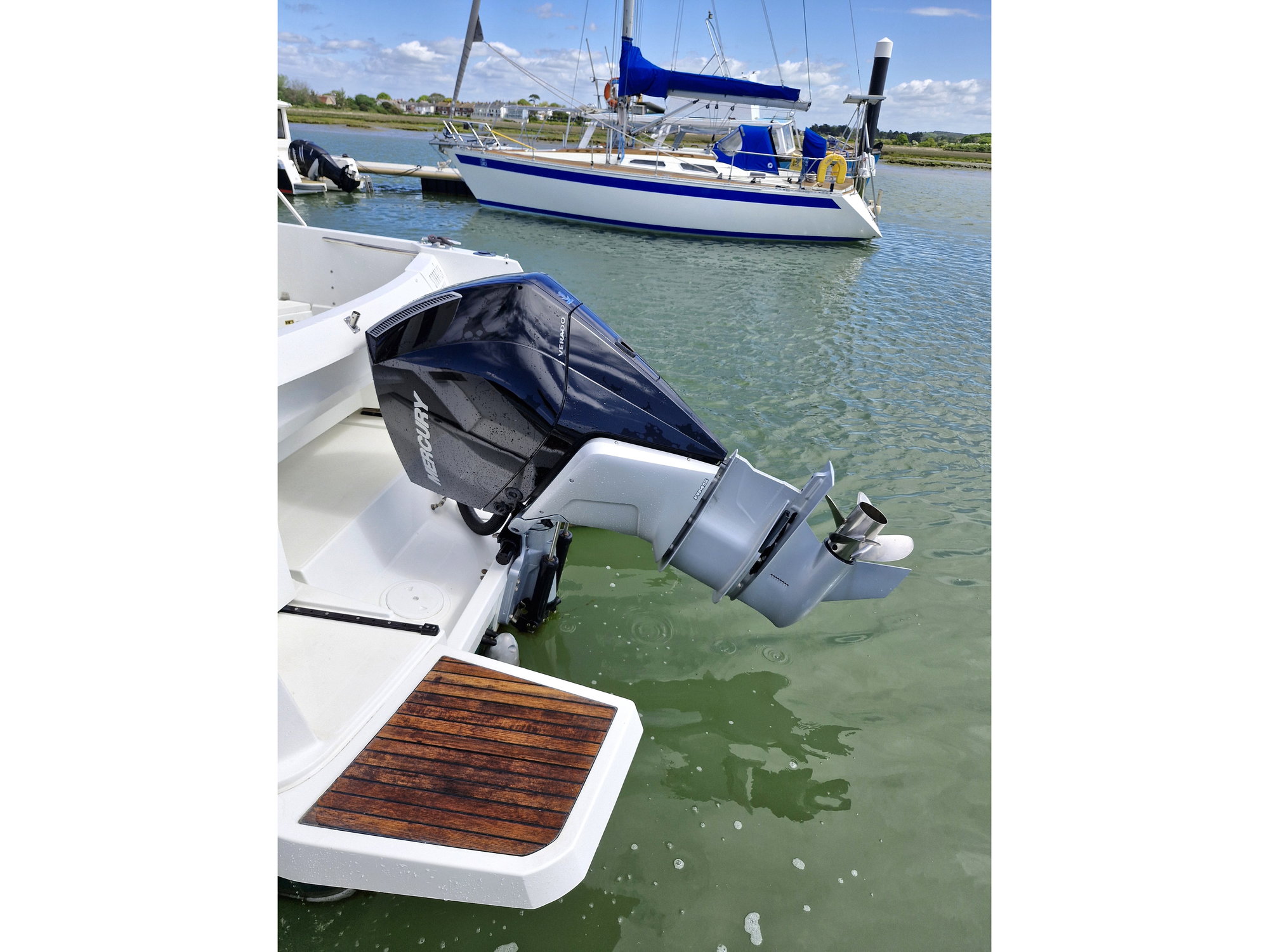 Powered by a Mercury Verado 300HP outboard (new in 2020, only 71 hours) and last serviced in 2026, she delivers strong, smooth performance. Bow and stern thrusters ensure exceptional manoeuvrability in tight marinas. A 400L fuel tank supports extended cruising, while comprehensive 12V/220V electrics, shore power, and dedicated batteries provide reliable onboard systems.