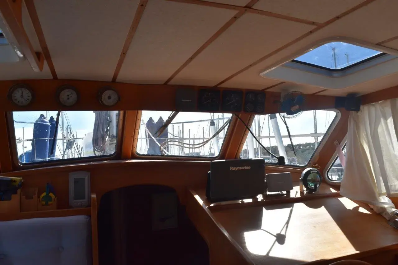 Nauticat 40, built 1986 by Siltala Yachts, Designed by Sparkman & Stephens. One of the most successful motor sailors available to purchase, S&S have hit the holy grail when it comes to combining sail and power with minimal compromising to either quality. This particular yacht has only just come out of a substantial refit which included numerous upgrades. Teak deck removed for ease of maintenance, Ford-Lehman 4 cylinder marine diesel fully serviced 2022, Onan 7.5KVA generator fully serviced 2022, New deck upholstery 2021, all new batteries 2021, Sleeps 4 in 2 double cabins. £79,950